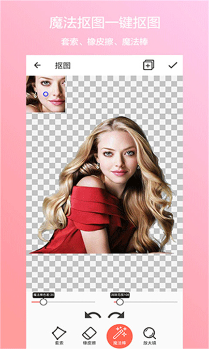 选定图片后,分解点击主界面中的抠图“+”图标,透明度与巨细,分解