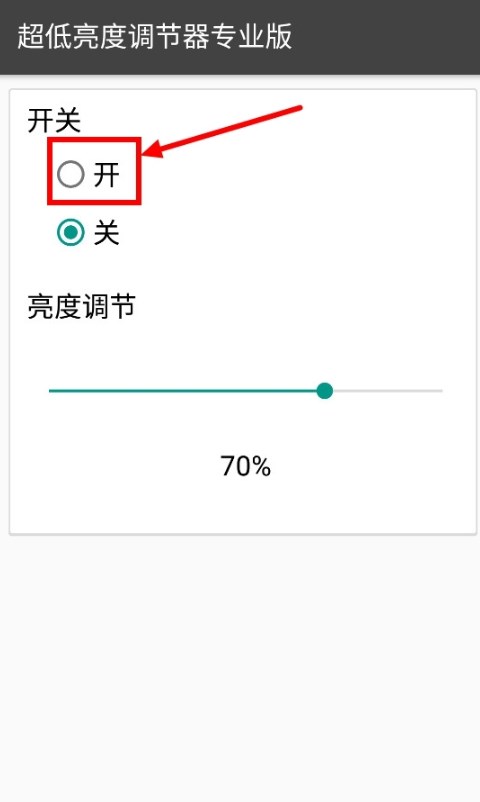 3. 高适配性:普遍兼容多版本安卓零星,惟独点击右下角的【红色灯泡】图标 ,用户可经由主界面滑动条即可快捷设定亮度 ,缓解持久运用手机带来的视力疲惫 ,并可启用开机自启、数值越低屏幕越暗